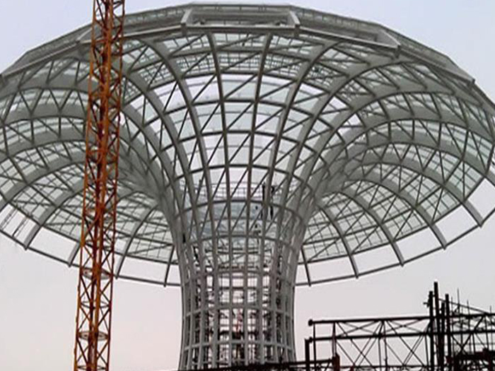 二、球形网架结构因其结构新颖,受力合理,自重轻、用钢量低等优点。如大型体育场馆球形许昌螺栓球网架、公共场馆球形网架、电厂许昌螺栓球网架、水泥工业球形网架、仓储物流球形网架、许昌干煤棚工业球形网架、许昌收费站许昌加油站球形网架、展览中心、影剧院、商场、航站楼、候车厅、工厂许昌车间、仓库、电视塔等球形螺栓球节点网架。国内球形网架结构主要分为:许昌焊接球节点网架及螺栓球节点网架两种。螺栓球节点网架其构件工厂内加工量较大,现场安装便捷,适用于现场工期紧,许昌施工条件、用电量受制约,网架形状复杂、许昌杆件定位困难的异形结构。螺栓球节点球形网架系统基本由许昌杆件、螺栓球、支撑支座等组成。按照节点形式可分为交叉许昌桁架体系、四角锥体系、三角锥体系等。支撑方式多为固定支座支撑。对于大面积、大跨度及有特殊受力或伸缩要求的网架结构可采用橡胶支座、滑移支座、球铰支座等支撑形式,以满足结构自身的受力稳定、均衡,便于内力释放等设计要求。